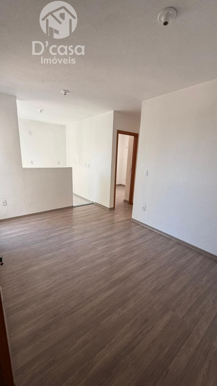 2 dormitórios, sala estar/jantar, cozinha, banheiro social, área de serviço e vaga de estacionamento.