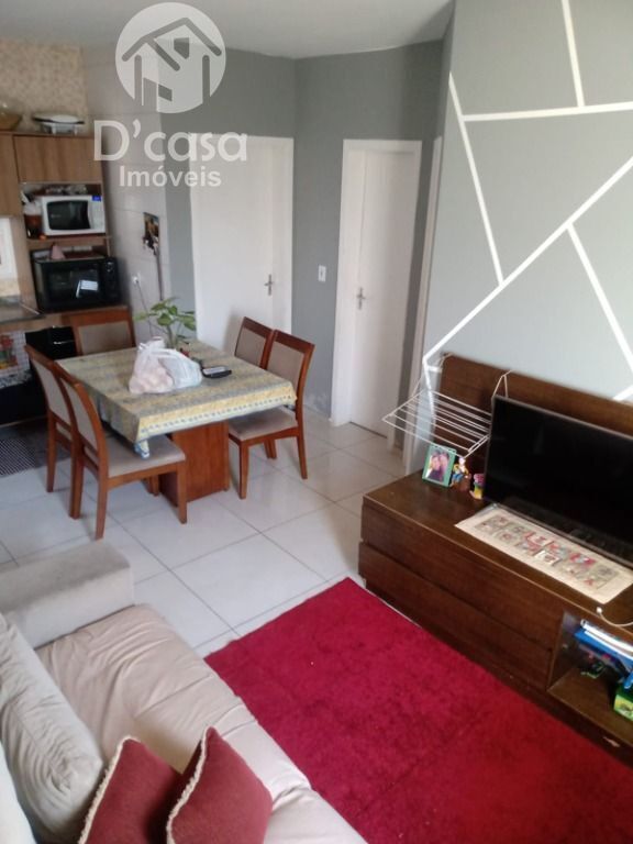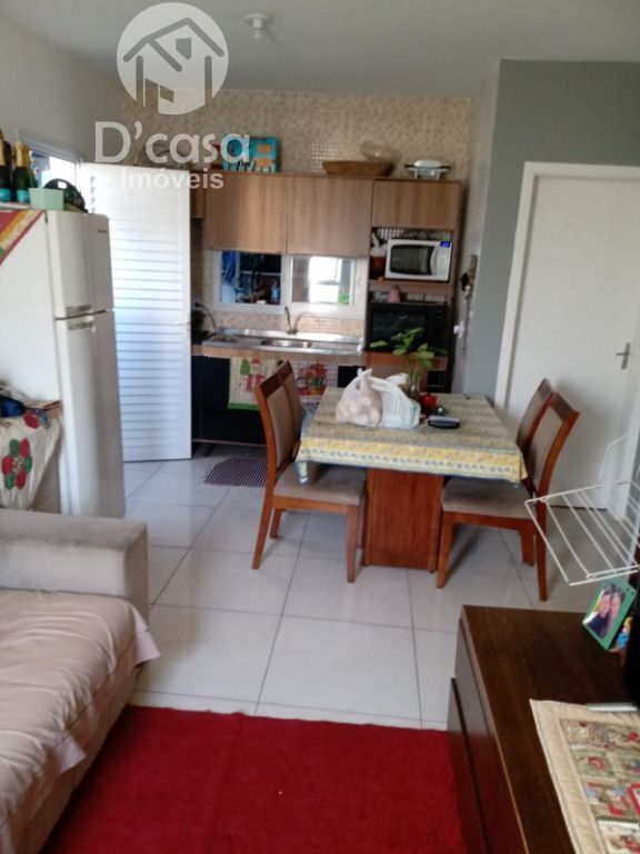 2 dormitórios, sala de estar/jantar, cozinha, banheiro, área de serviço e vaga de garagem.