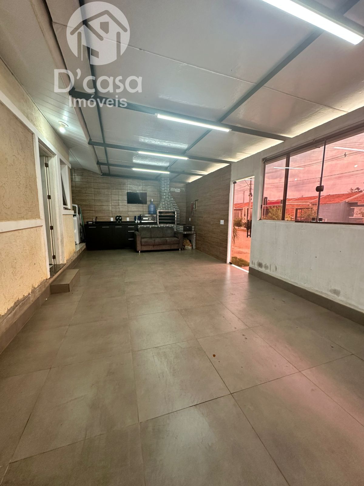 2 dormitórios, sala estar/jantar, cozinha, banheiro com box, área de serviço, churrasqueira, fogão a lenha, vaga de garagem e pátio coberto.